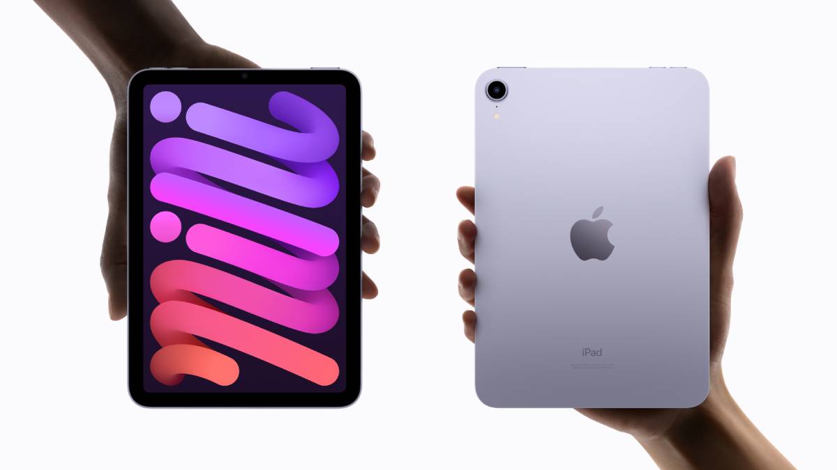 الأولى تدعم شريحة نانو او شريحة الكترونية والثانية تدعم شبكات الواي فاي فقط بدون شريحة. في البداية يأتي ايباد ميني الجيل السادس مع تصميم جديد بالمقارنة مع الإصدار السابق (ايباد ميني 5). الفريم والظهر مصنوعين من الالمونيوم والواجهة الامامية بشاشة اكبر وحواف اقل.